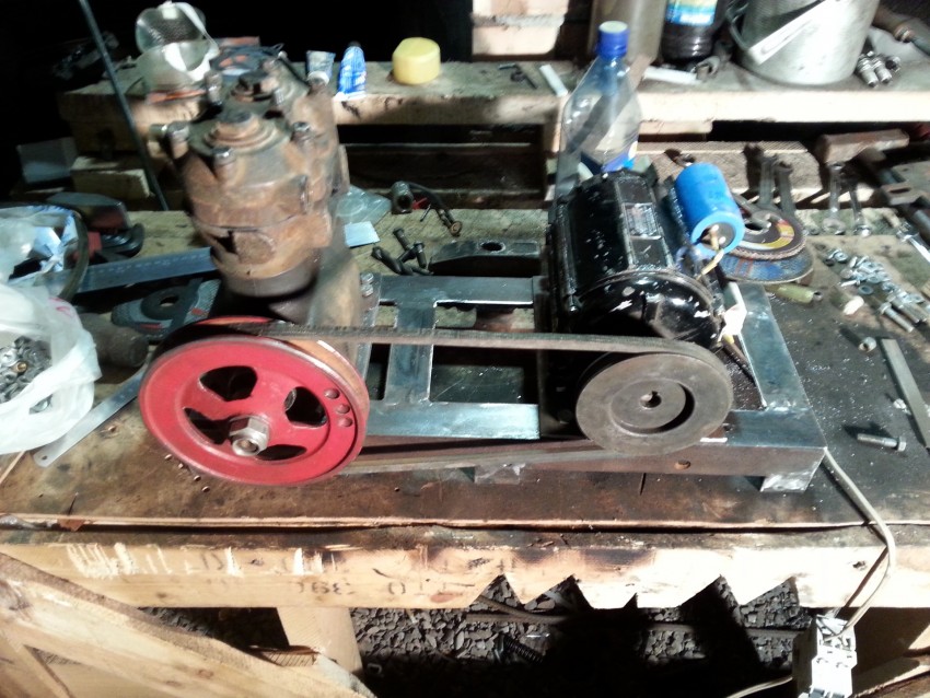 Вся конструкция будет крепиться на раме, которую можно изготовить из прочных досок или металлических уголков. На нее нужно установить основные узлы, надежно их закрепив.