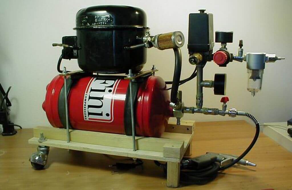 Заманчиво, конечно, купить хороший компактный агрегат в магазине, но это будет стоить немалых денег. Опытный домашний мастер вполне в состоянии сделать компрессор своими руками из имеющихся в распоряжении подручных средств, побывавших в эксплуатации узлов, демонтированных с вышедшей из употребления техники.