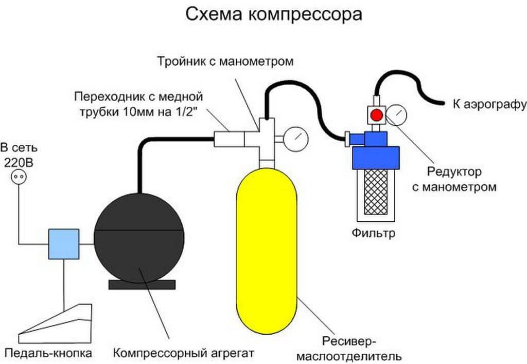 Хороший компрессор заводского производства стоит недешево, но может использоваться как для профессиональной покраски, так и для выполнения качественной эффектной аэрографии. Изучив принципы работы такого устройства, можно изготовить качественный самодельный компрессор для гаража.