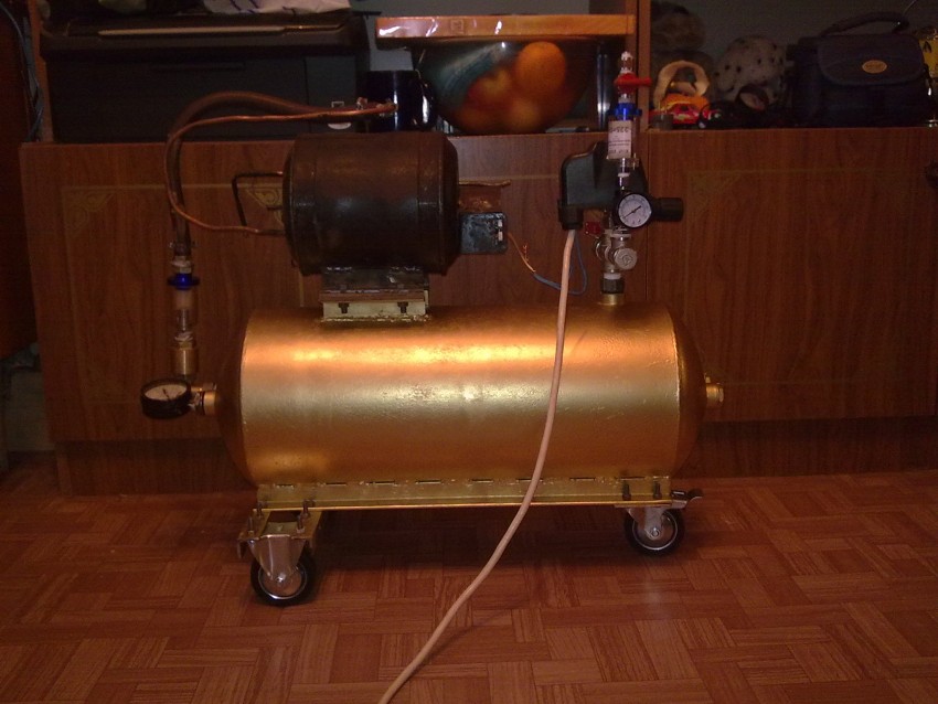 Сделать компрессор с нуля в условиях домашней мастерской невозможно — потребуются готовые узлы. Но стоимость его все равно будет довольно низкой, тем более что используются некоторые элементы уже отслужившие свое, без возможности применения по прямому назначению.