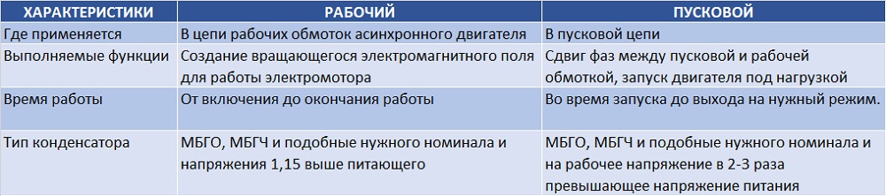 Видов конденсаторов для электродвигателя в настоящее время существует три: