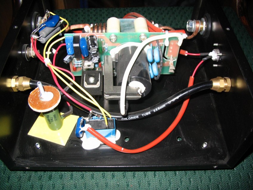 При сборке трансформатора обязательно монтируют конденсаторы, а на корпус выводят кнопки регулировки скорости и времени подачи электрического разряда. Подобный принцип позволяет регулировать процесс сварки деталей, не допуская перегревания металла и образования грубых швов.