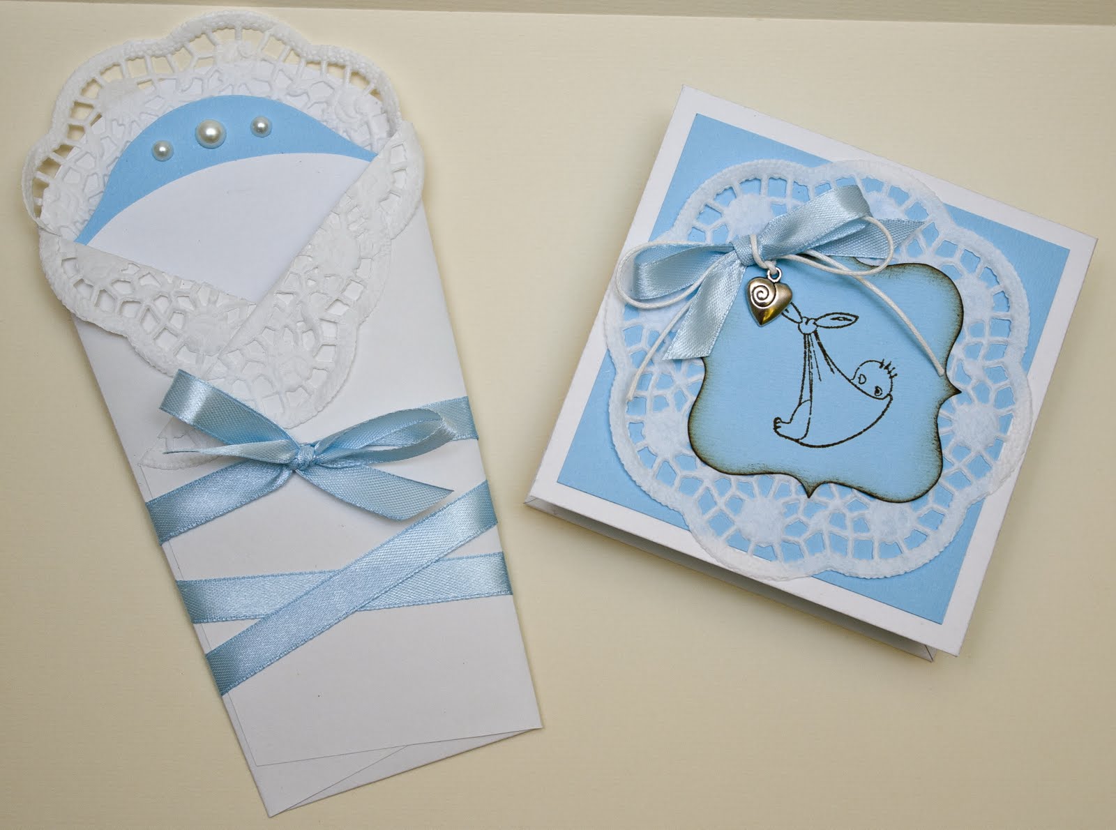 Для крестин подойдет этот нежный и довольно простой в исполнении конверт. В зависимости от пола ребенка, можно выбрать голубую или розовую палитру. Также для оригинальности в комплекте с конвертом идет вкладыш, на котором можно написать свое пожелание.