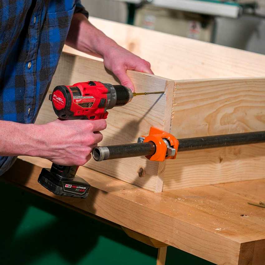 Перед тем как делать верстак из древесины, лучше заранее оценить объем работ и обозначить порядок действий. Большинство деталей стола фиксируется с помощью винтовых соединений. Чтобы облегчить процесс сборки, желательно заранее выполнить для них отверстия в фанере в соответствующих местах. Для этих целей нужно использовать сверло, диаметр которого примерно на 1/2 или 1/3 меньше диаметра самого крепежа.