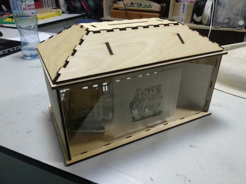 Копилка готова! Монеты кладем в выдвигаемый отсек, они упадут в короб лишь тогда, когда вы задвинете ящик обратно.