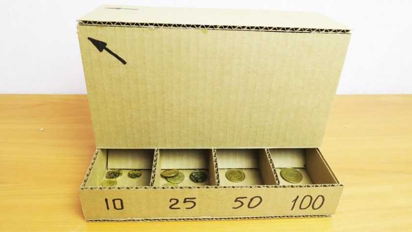 Копилка для бумажных денег из картонной коробки
