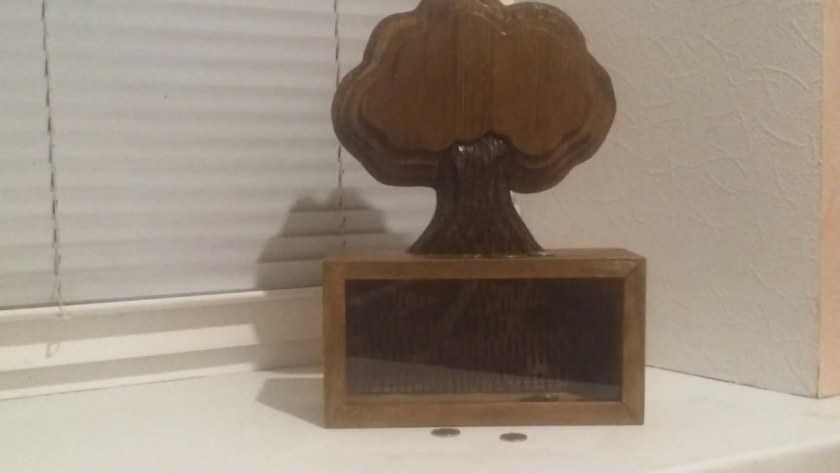 - С секретом – в коробку из фанеры помещается зеркало под углом, под него монтируются предметы декора: когда внутрь кладут монету, она визуально пропадает.