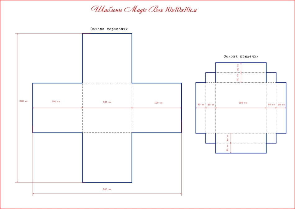 Коробочку можно сделать любого размера, важно только правильно составить выкройку. В этом мастер-классе мы возьмем размер 10х10х10 см.