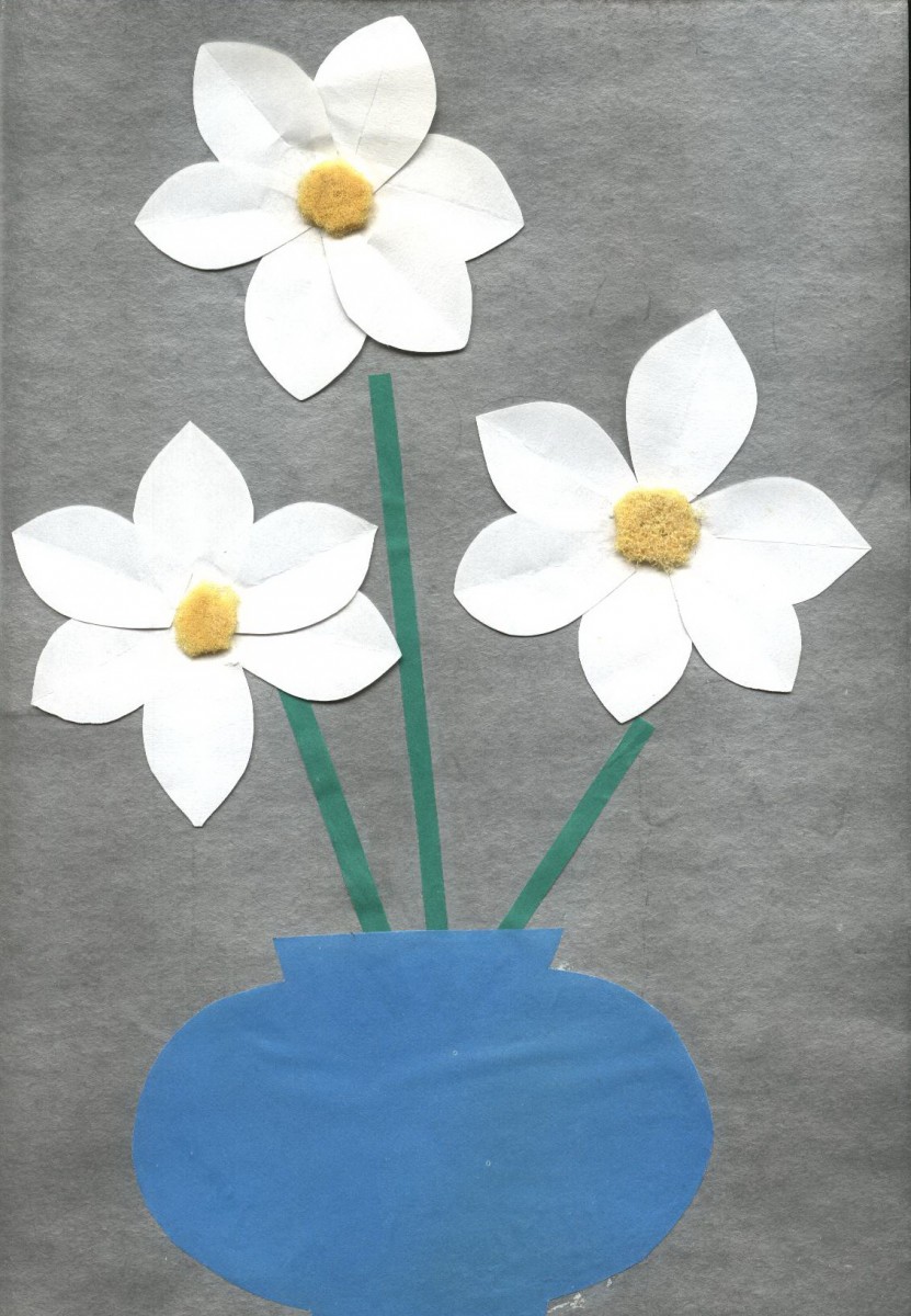 Такая аппликация наверняка понравится вашему ребенку и подарит удовольствие от ее создания. Кроме того, на основе предложенного мастер-класса можно изготовить картинки, связанные с временами года. Так, для осеннего букета можно использовать высушенные листья, а также грибы из бумаги, для летнего – изготовить одуванчики из бумаги, а для весеннего – подснежники или тюльпаны.