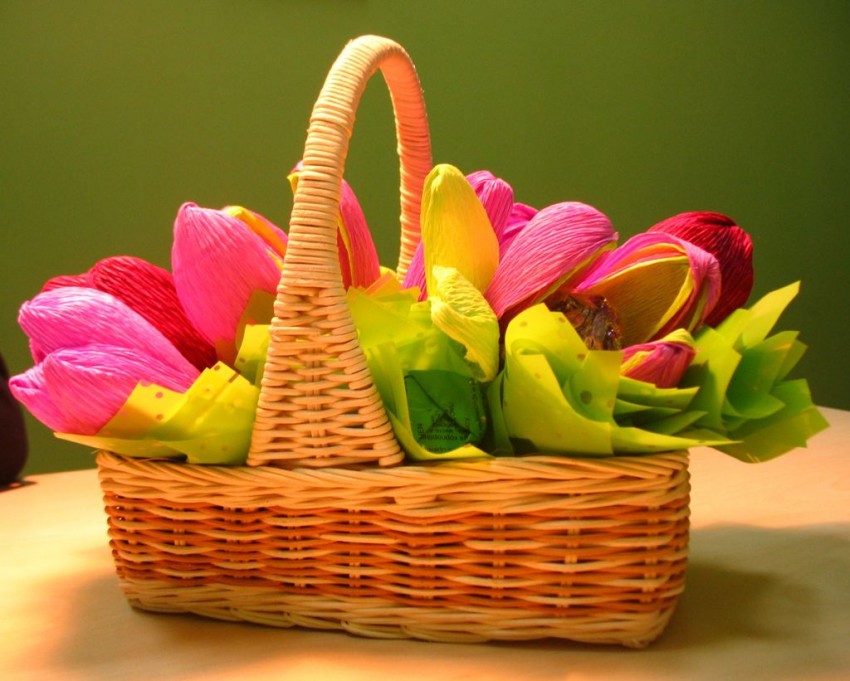 Самые талантливые и креативные дети могут дать волю своей фантазии сделать самую необычную поделку. Корзинка в форме цветка – яркий пример того, что из обычной бумаги можно создать настоящее произведение искусства. При желании можно сделать своими рукмаи корзинку из цветов гофрированной бумаги.
