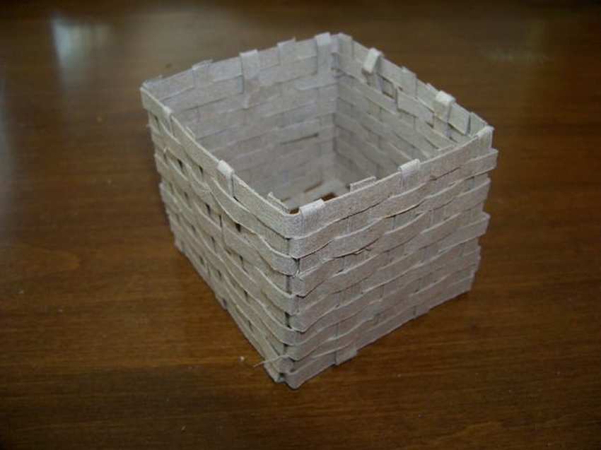 Из картона можно смастерить и плетеную корзину, причем размер может быть как маленький, так и большой, в зависимости от качества и прочности картона.
