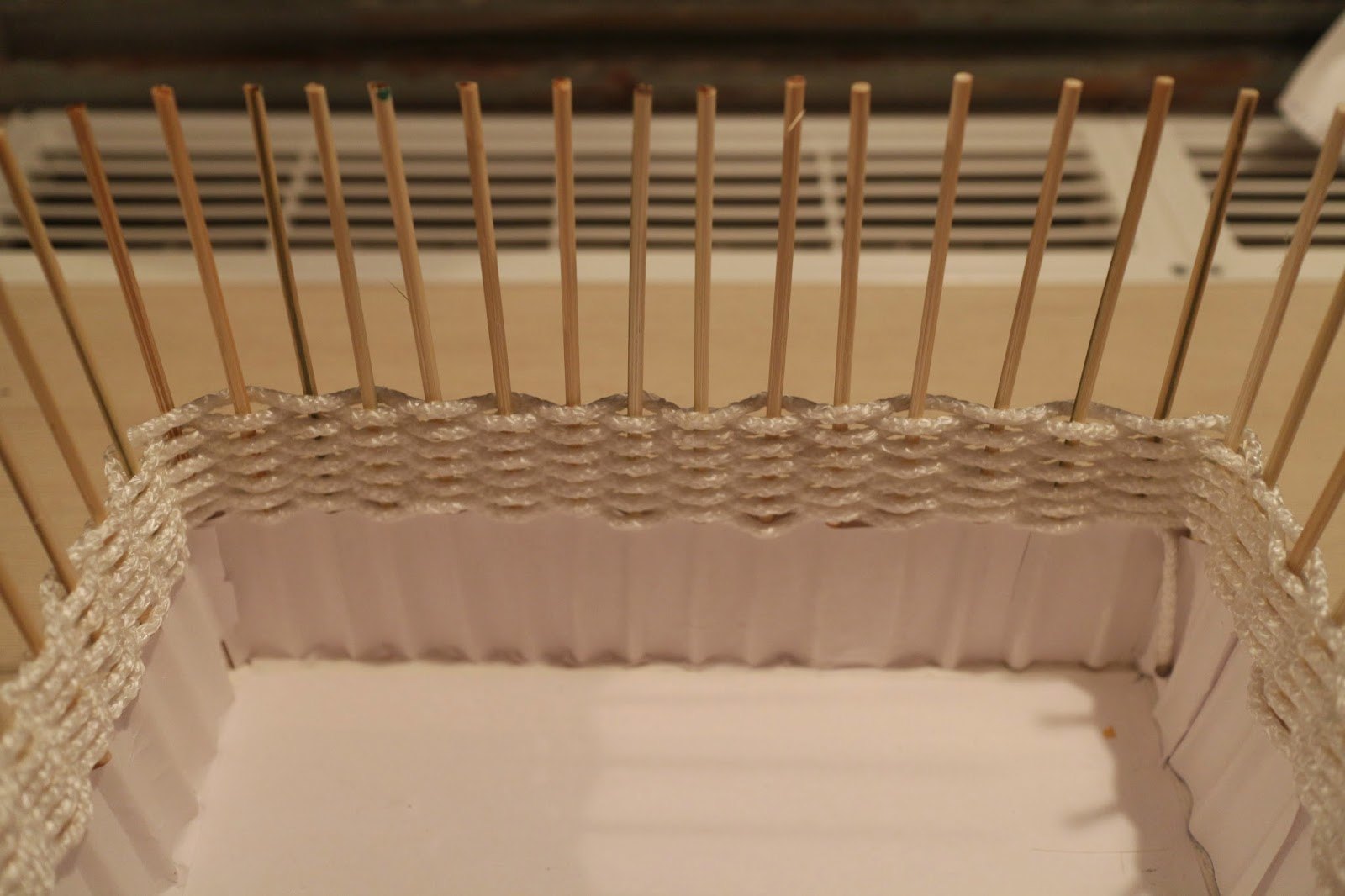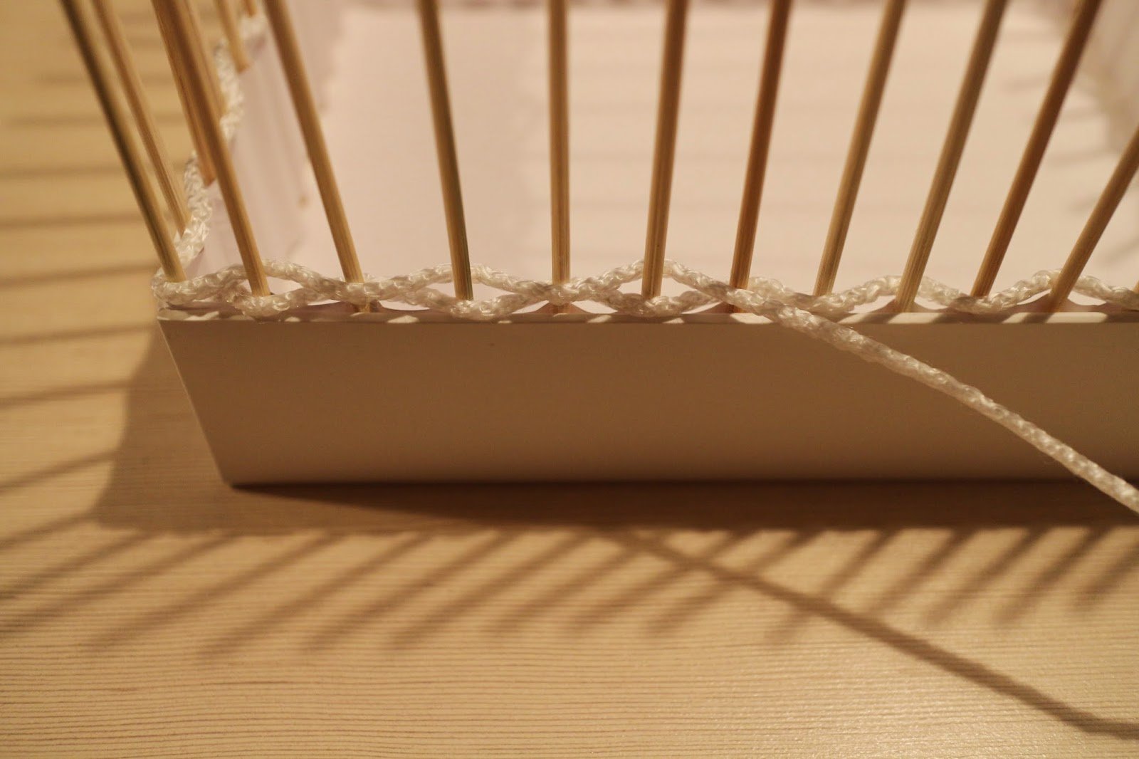 Аккуратно убираем лишнюю часть палочек с помощью кусачек. Сверху приклеиваем нить, чтобы оформить край корзинки.