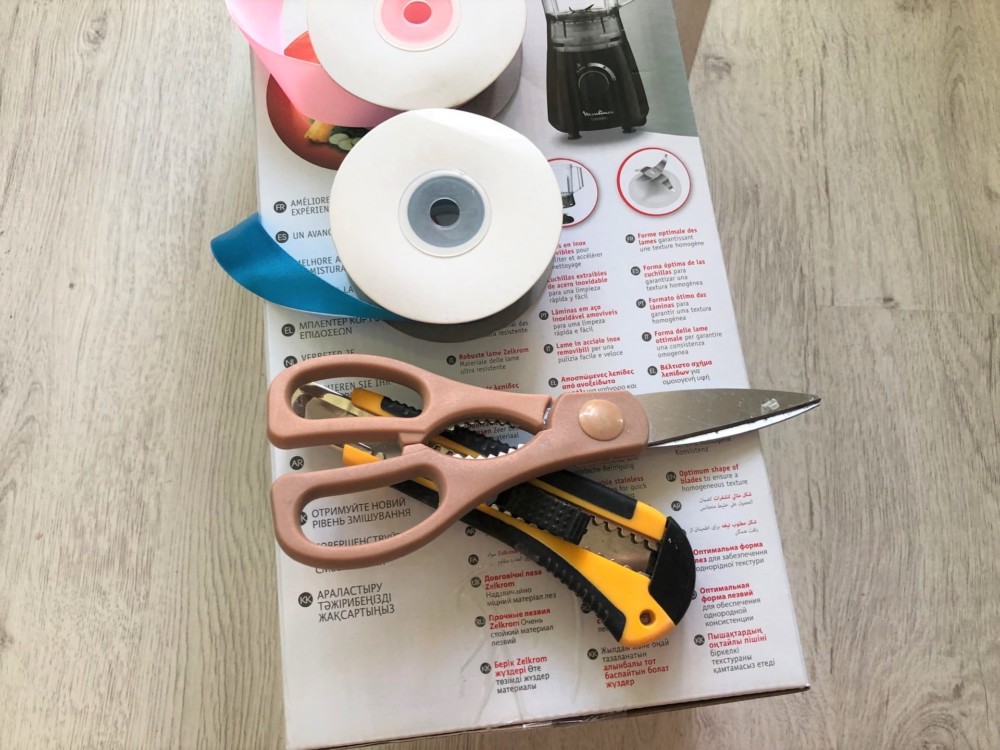 - Ленты двух цветов (их можно заменить цветной бумагой, лоскутами ткани и другими подручными материалами)