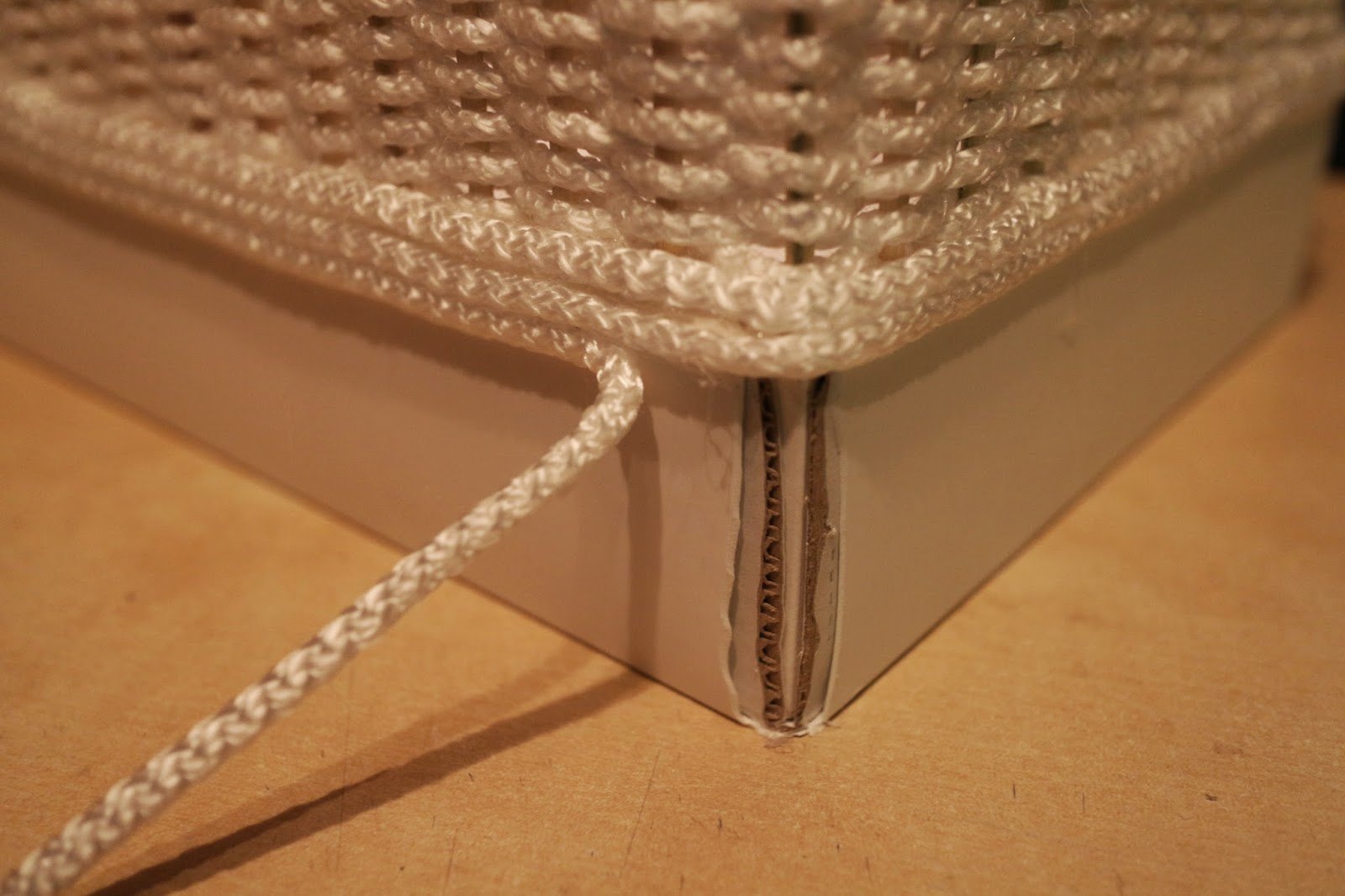 И уже на нем начинаем со дна обклеивать канатом, просто склеивая полоски. Довольно быстро и красиво.