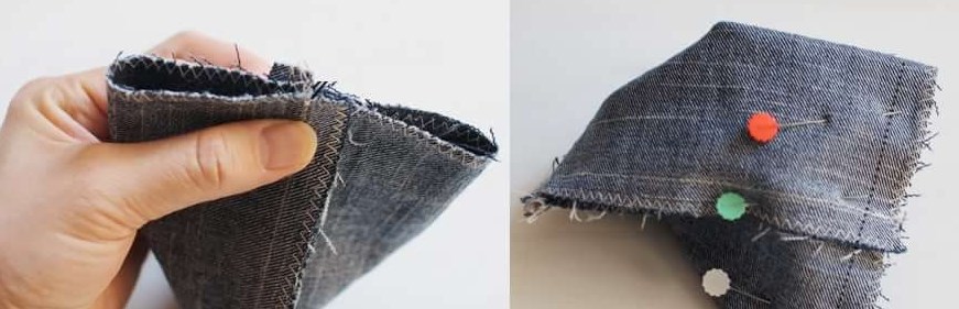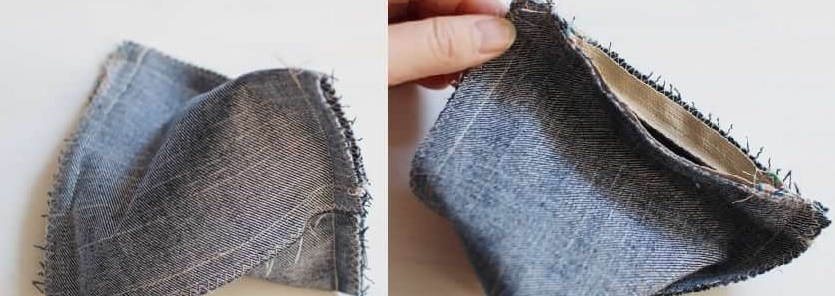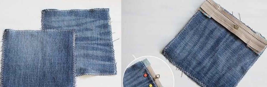 Отличный кошелек получится пошить из старых джинсов своими руками. Для начала надо подготовить материал, подойдут ровные куски брюк. Они должны быть выстираны и отутюжены. Сшивание выполняется в 3 этапа: пошив самого аксессуара, кармана для мелочи, сбор всего изделия. Сначала выполняется выкройка кошелька с припусками на швы. Последовательность работ далее: