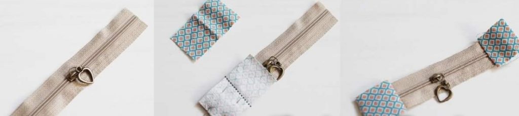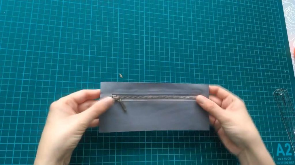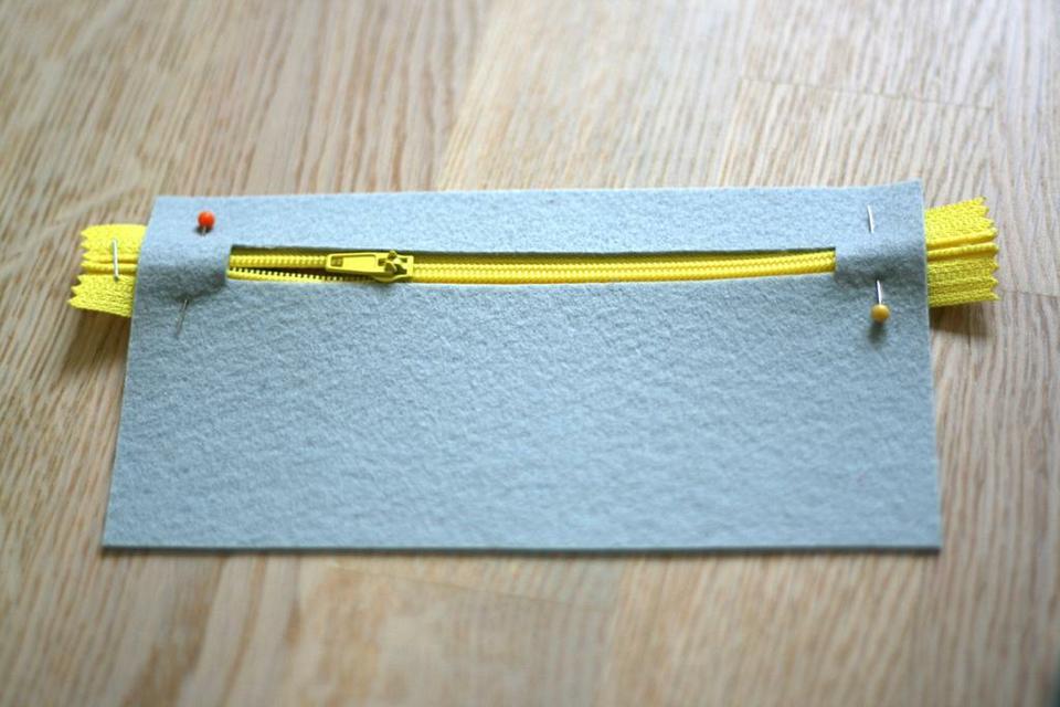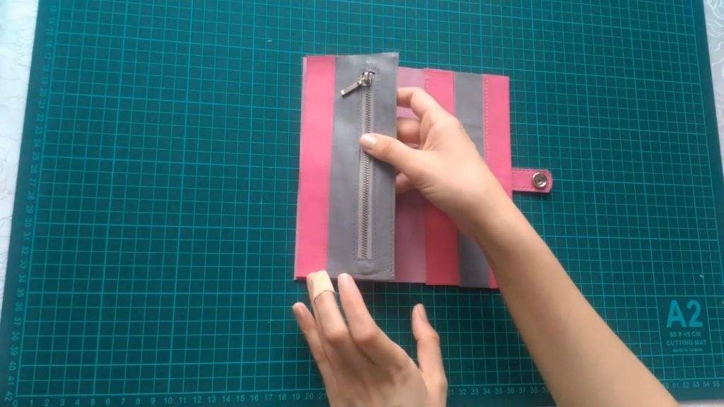 Детали кошелька обрабатываем на швейной машинке строчкой зигзаг. Пришиваем молнию.