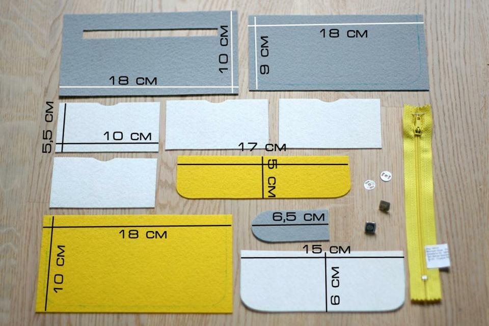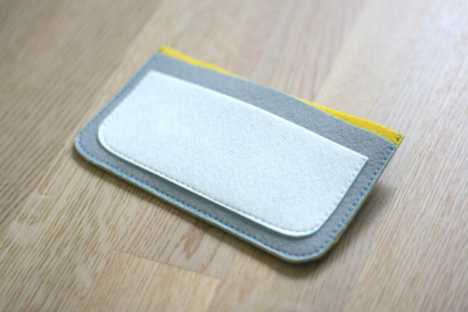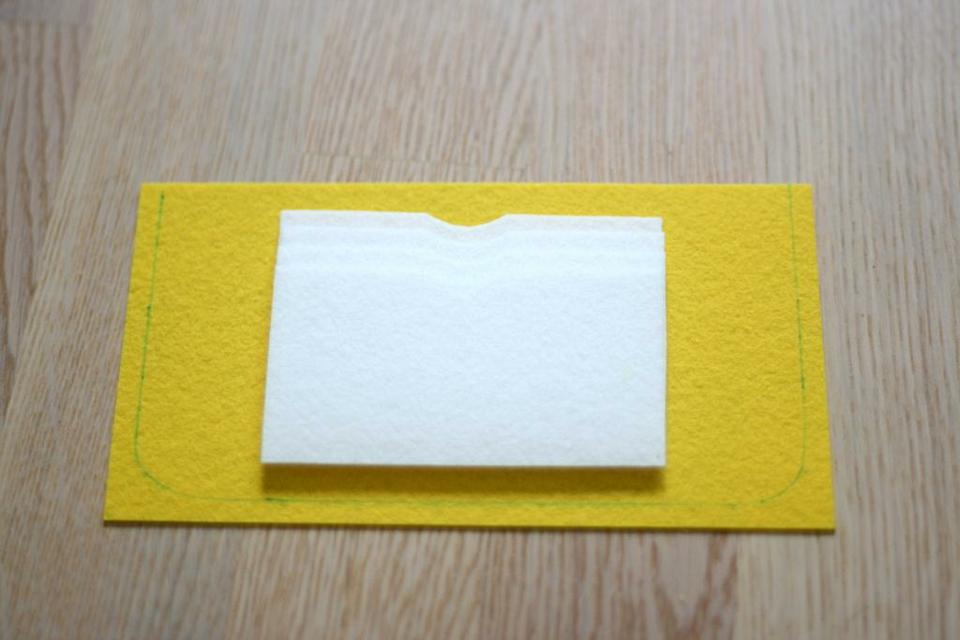 За счёт фетра кошелёк будет более прочным и лёгким. Можно вовсе отказаться от бумаги и использовать только фетр. Материал достаточно прочный, не осыпается, поэтому нет необходимости в обработке краёв. Сшивать фетровые детали лучше на швейной машинке. Альтернативно можно воспользоваться клеем для ткани.