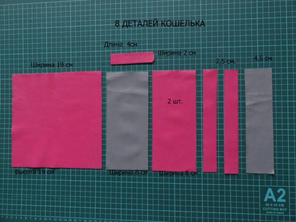 - Заранее продумайте жалеемый размер кошелька: его длину и ширину.