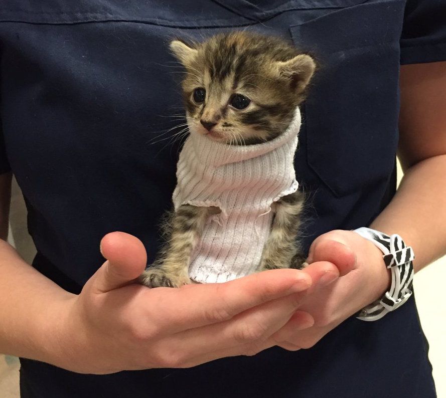 Котятам часто сложно регулировать температуру своего тела, и для этих целей носок можно превратить в свитер для вашего домашнего питомца.