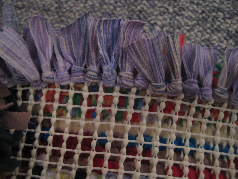 Обратная сторона коврика. Завязываем все нитки или верёвки, делаем несколько узелков.