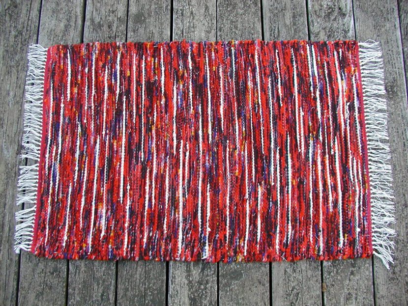 - при наличии футболок разнообразных оттенков, вы сможете при плетении в одном месте сменить цвет двух-трех лент, тем самым сделав коврик разноцветным;