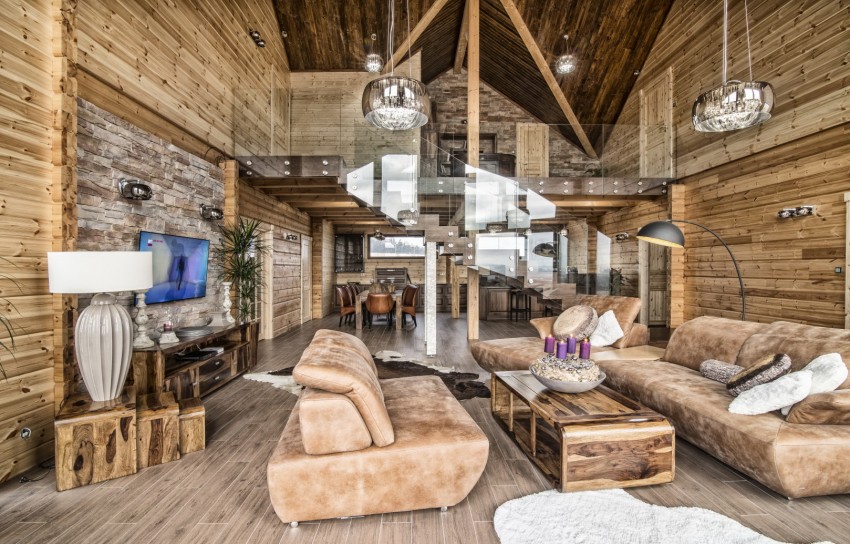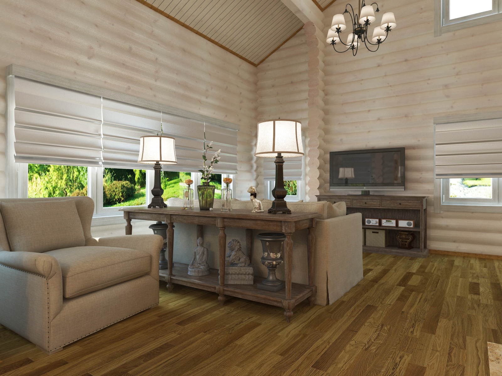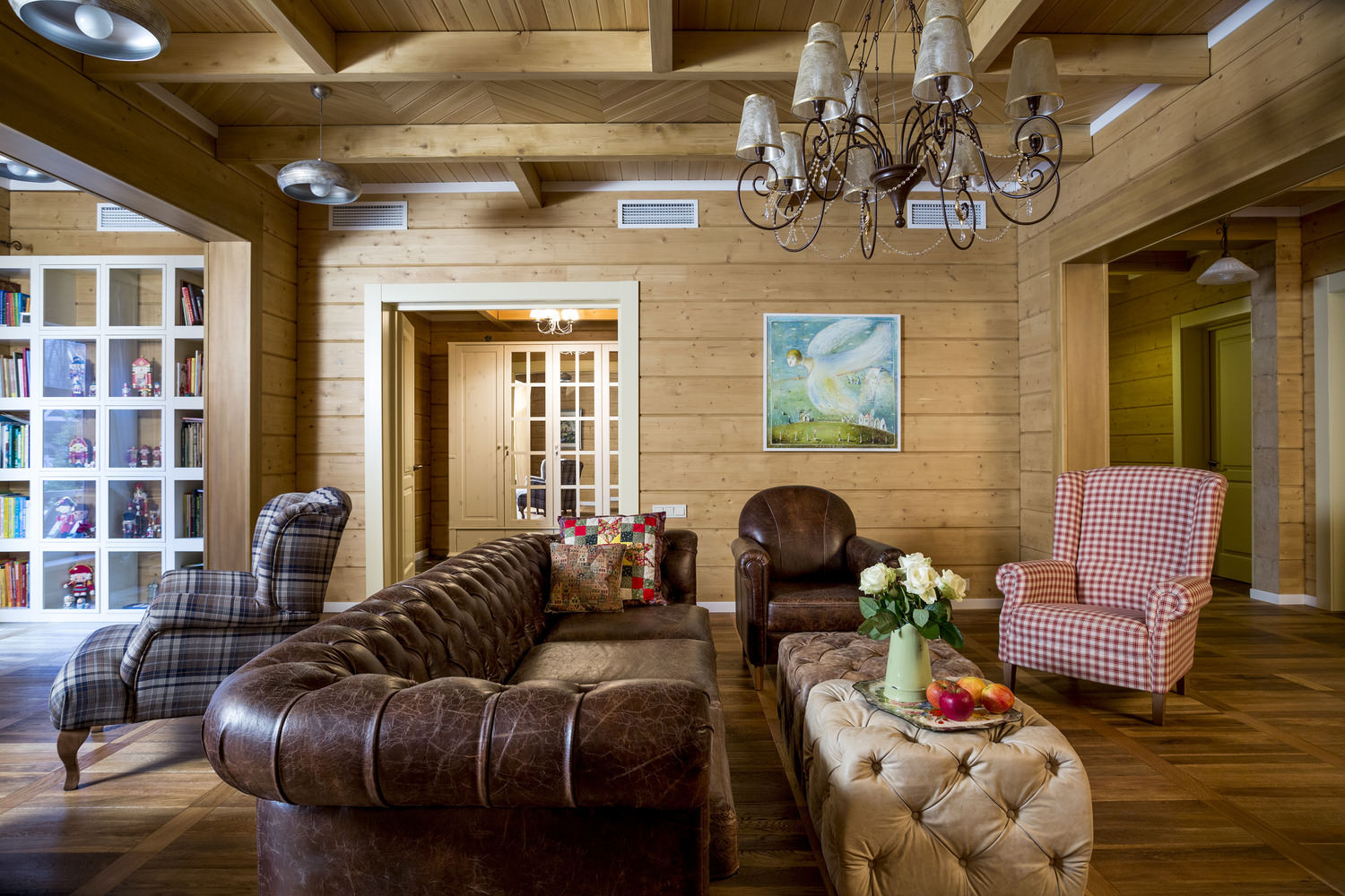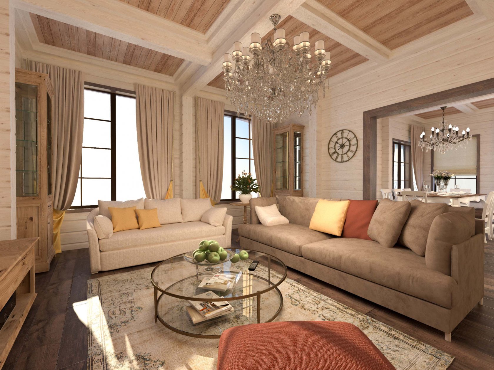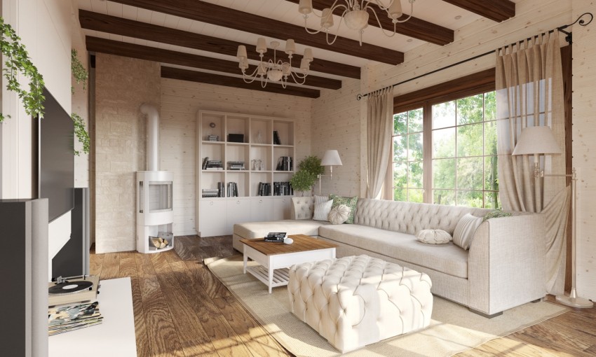 При планировании стиля для интерьера гостиной в деревянном доме, большинство людей останавливают свой выбор на модерне, провансе или шале. Гораздо реже склоняются к современным техно или хай-тек.