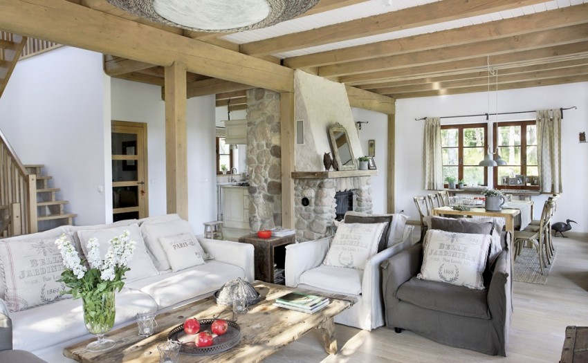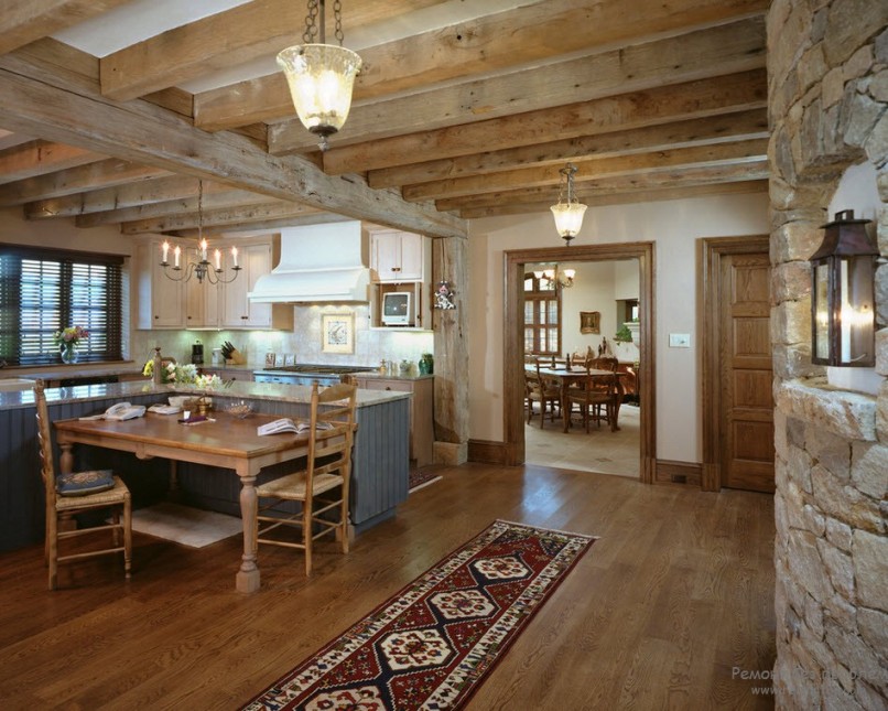 - При отделке потолка стоит оставить на поверхности деревянные потолочные балки.