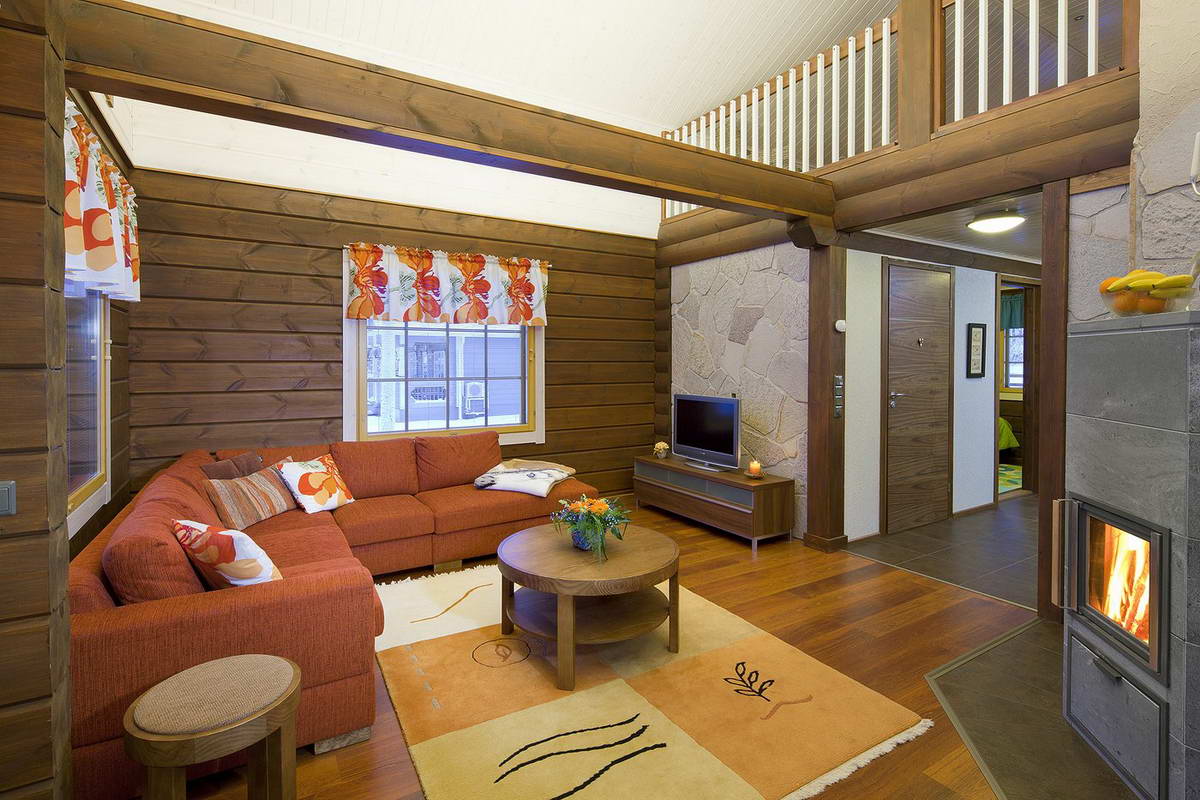 Фото деревянных домов снаружи весьма впечатляют. Но если вас больше интересуют интерьеры, рассмотрите внимательней снимки готовых помещений. Вам будет легче определиться с решением по поводу цветовых сочетаний, мебели, отделки, прочувствовать определенный стиль.