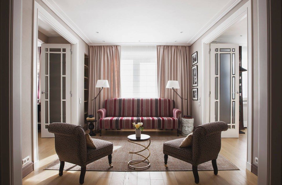 Большие проемы легко украсить с помощью драпированных штор, полотна с крупным рисунком. Тем, кто предпочитает строгий, сдержанный стиль, можно посоветовать приобрести длинные жалюзи. Обилие новых материалов, применение модных технологий предоставляет нам возможность удачно сочетать оформление окон с внутренним убранством квартиры и фасадом здания.