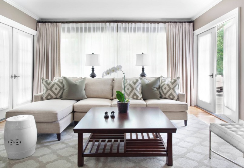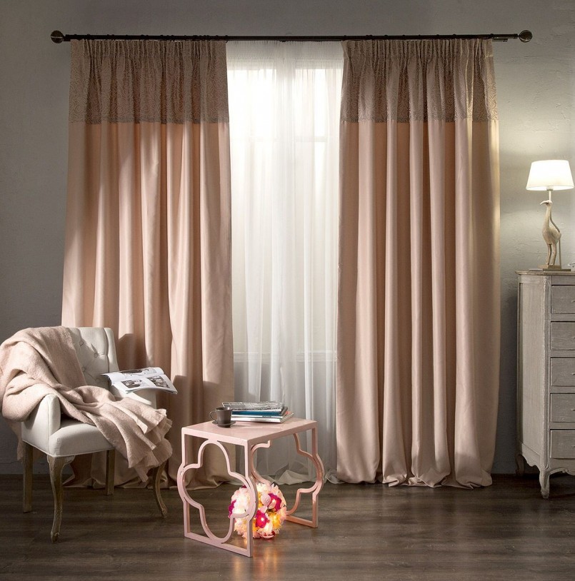 Шторы пастельного цвета создадут атмосферу уюта и комфорта в гостиной.