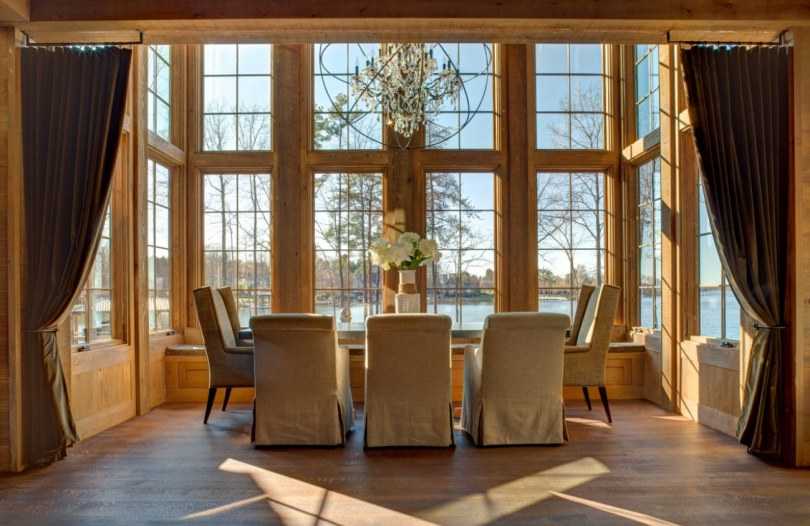 Помещение с большими панорамными окнами смотрится эффектно и необычно. Грамотный подход в процессе оформления оконного пространства, позволяет создать гармоничный дизайн, который будет радовать своих хозяев. На фото больших штор изображены необычные варианты оформления оконного проема.