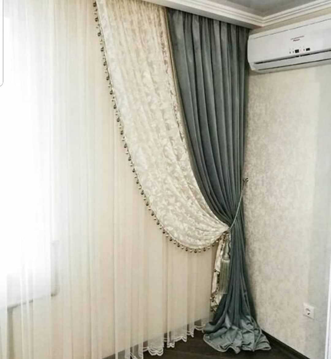 Натуральные материалы приятнее выглядят внешне, в то время как искусственные лучше изолируют помещение от света и звуков с улицы. Среди натуральных материалов, наиболее востребован бархат и тафта.
