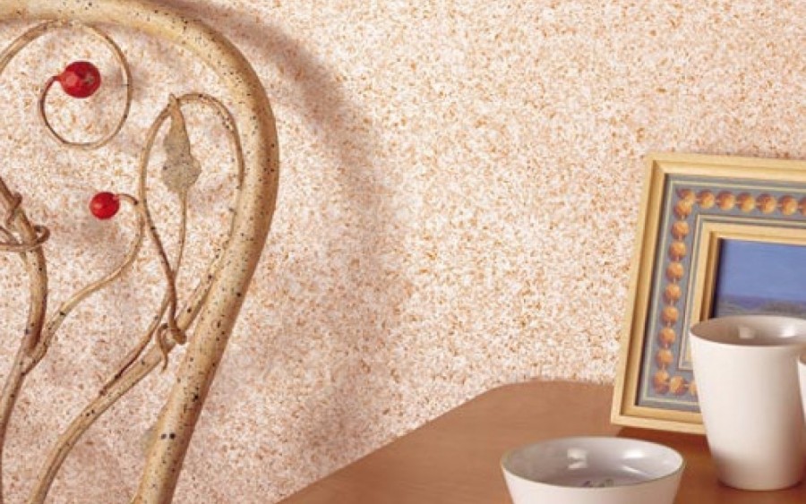 В базовый состав могут добавлять еще флоки и глиттеры — белые или цветные вкрапления, мелкие волокна, песок, разноцветные кристаллы, блестки. Такие варианты есть у Candis, San Marco. Есть еще лаки с перламутром. Ими можно покрывать базовую краску и получать стойкую к истиранию перламутровую поверхность.