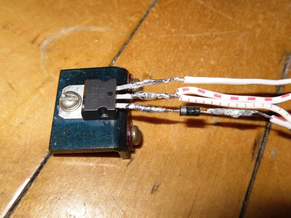 - Припаянный к входному контакту выпрямляющий диод типа 1N4007.