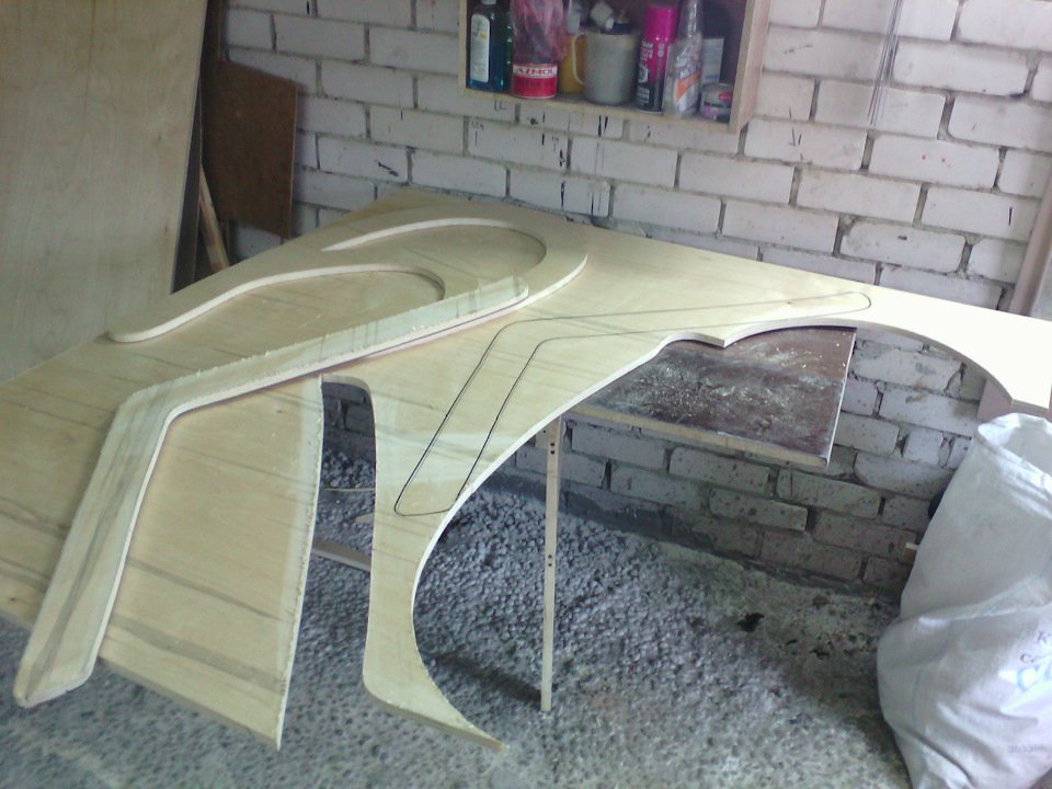 - Перед склеиванием фанерных деталей их соприкасающиеся поверхности необходимо зачистить наждачной бумагой, затем очистить материал от пыли и нанести клей параллельно волокнам фанеры. Склеивающиеся детали нужно поместить под пресс.