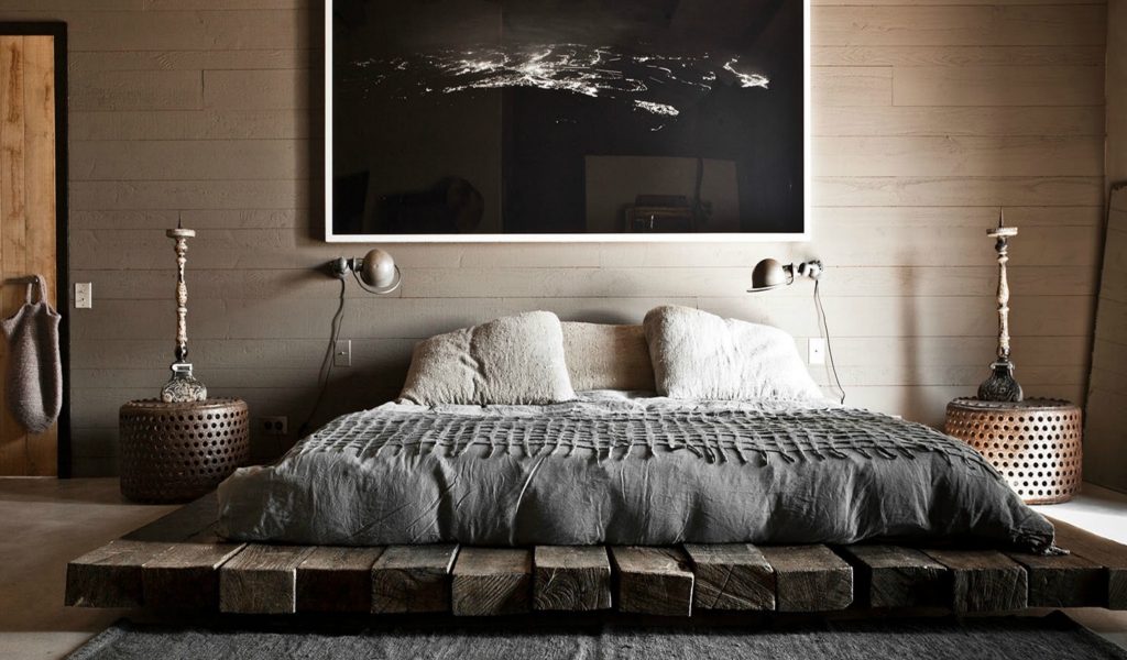 - Минимализм расположен к простым формам и отсутствию выделяющихся аксессуаров. Высота настила должна быть около 0,2 м или меньше.
