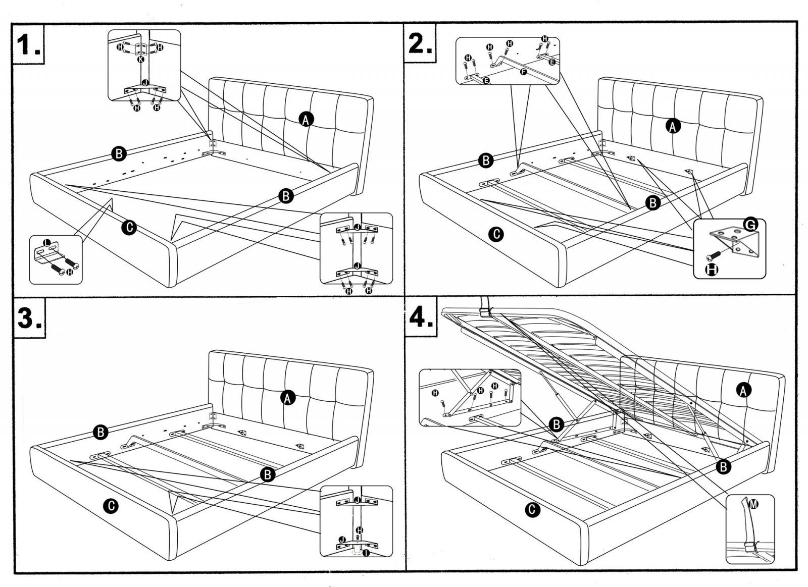 В инструкции по сборке кровати с подъемным механизмом указаны все процессы работы. На первом этапе понадобится: