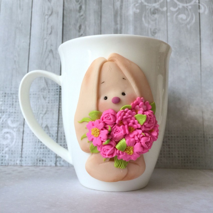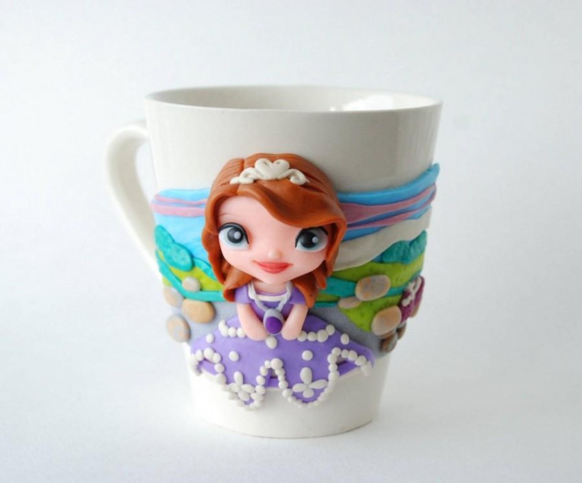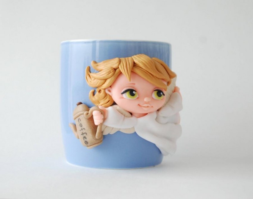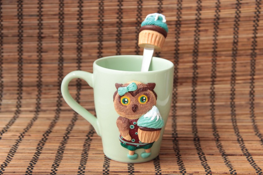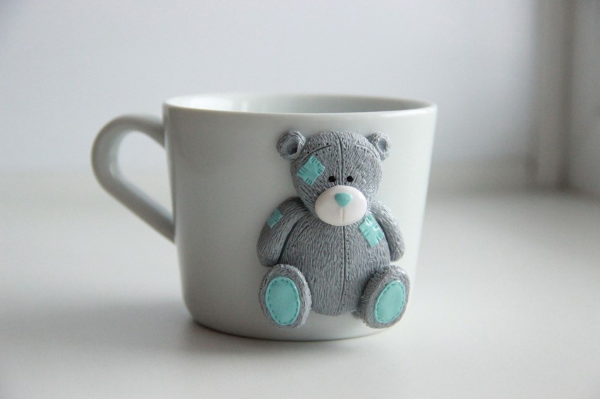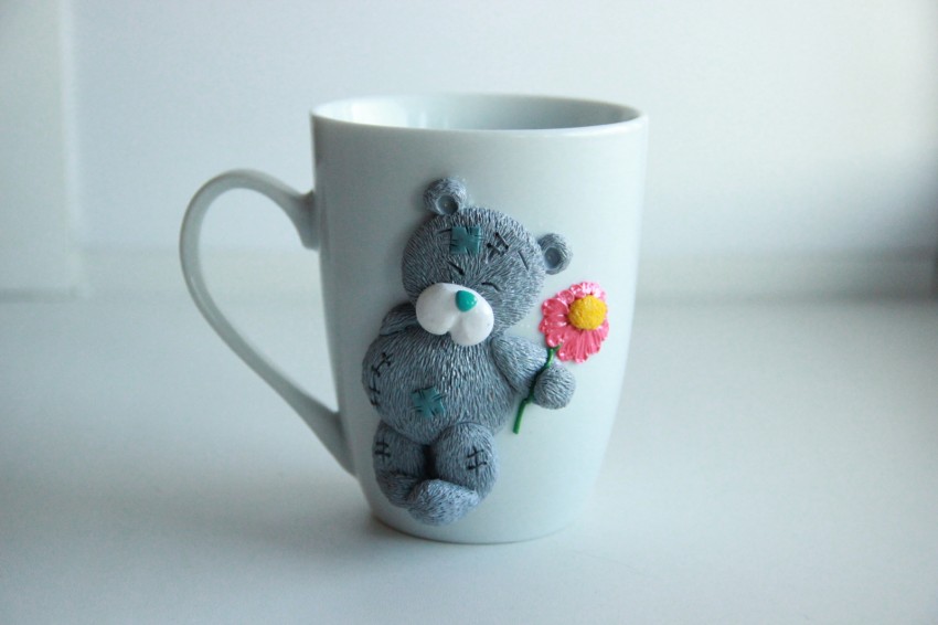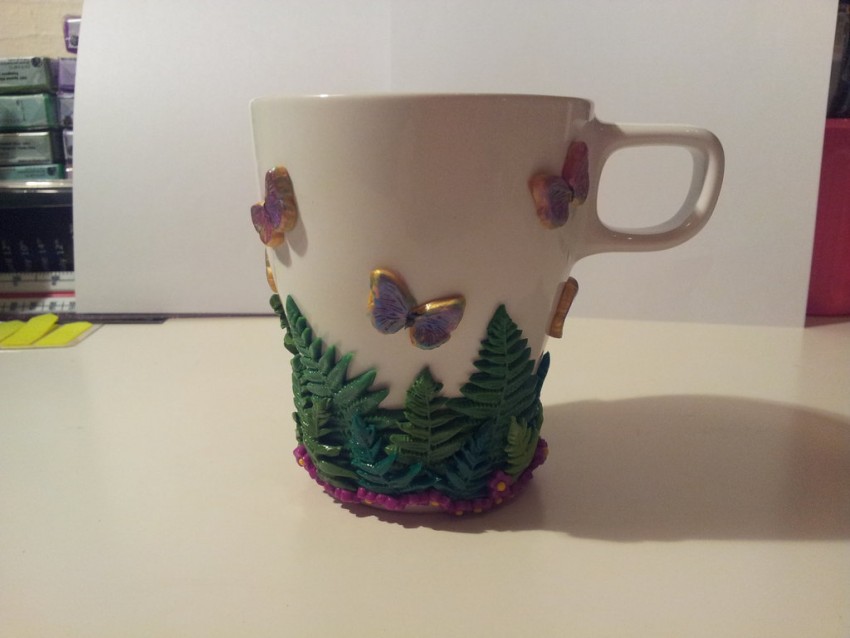 Сформируйте ручку, прикрепите к боковой поверхности чашки и разровняйте место стыка. Для украшения почти готового шедевра используйте разноцветную полимерную глину. Вылепленные цветы, бабочки, жуки, милые животные придадут изделию индивидуальность и очарование. Чашка сохнет в течение суток Если её поверхность решили оставить ровной, раскрасить её возможно после высыхания.