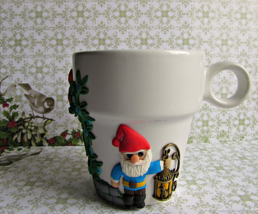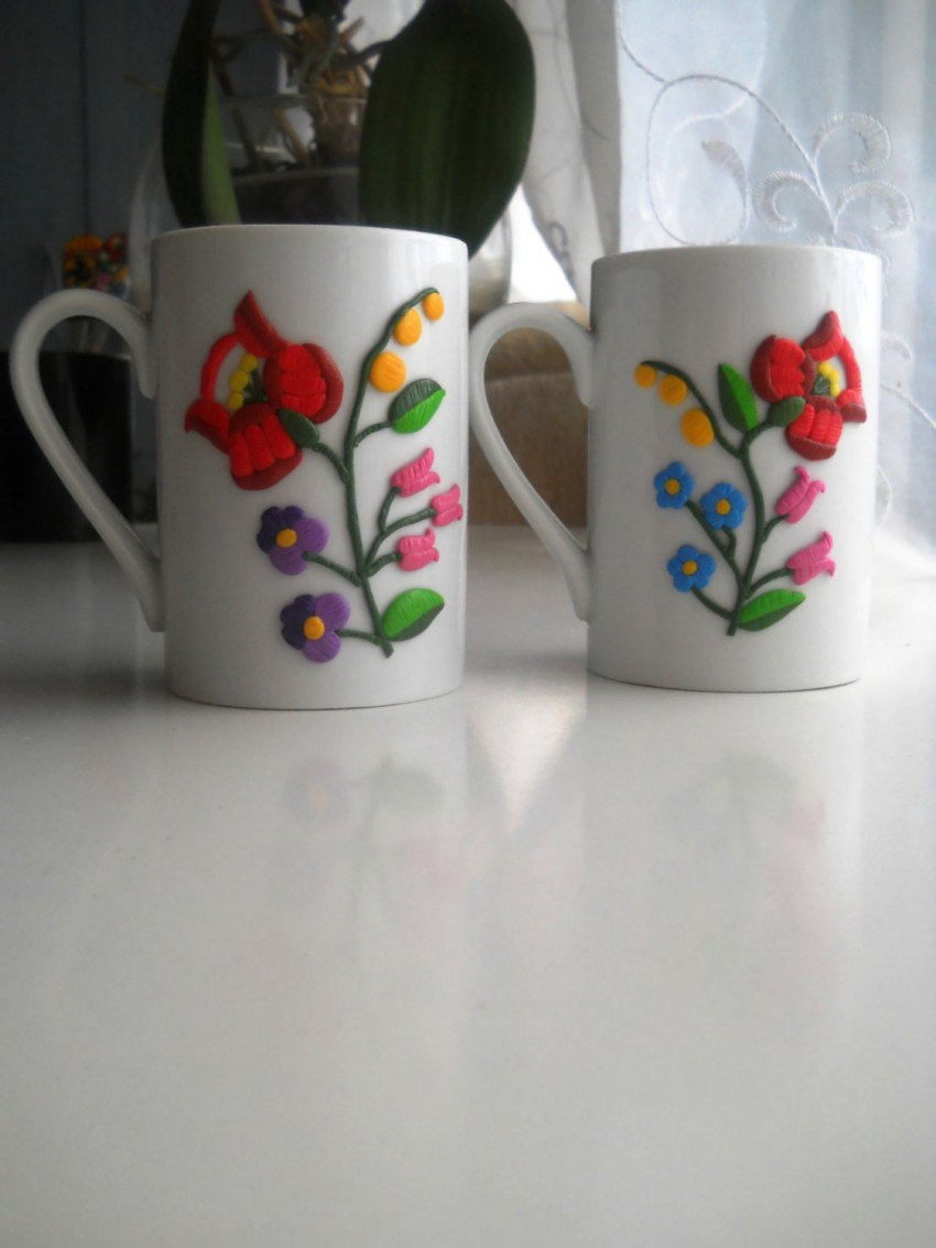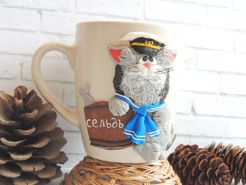 Все эти виды прекрасно подойдут для тех, кто решил выполнить декор кружки полимерной глиной. Некоторые мастера используют материал, привезенный из Америки. Это полимерная глина двух марок – «Като» и «Скалпи». В российских магазинах ее не предлагают, но тем, кто смог ее приобрести, нужно быть готовым к достаточно сильному запаху материала, схожему с запахом советской гуаши. По другим своим качествам этот полимер аналогичен иным маркам.