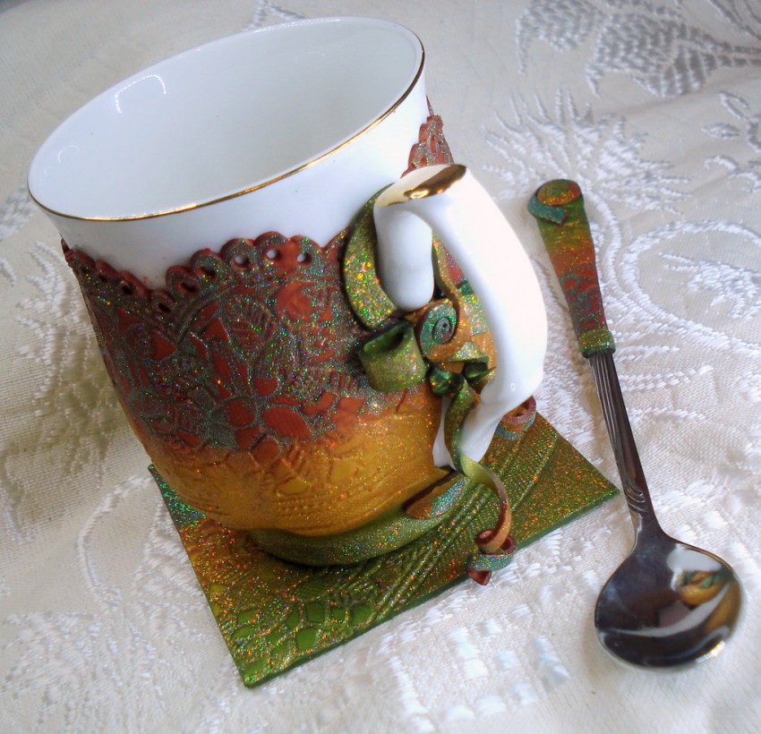 Это руководство по декору кружек из полимерной глины, поможет вам создать своими руками подарочную кружку с блестками.