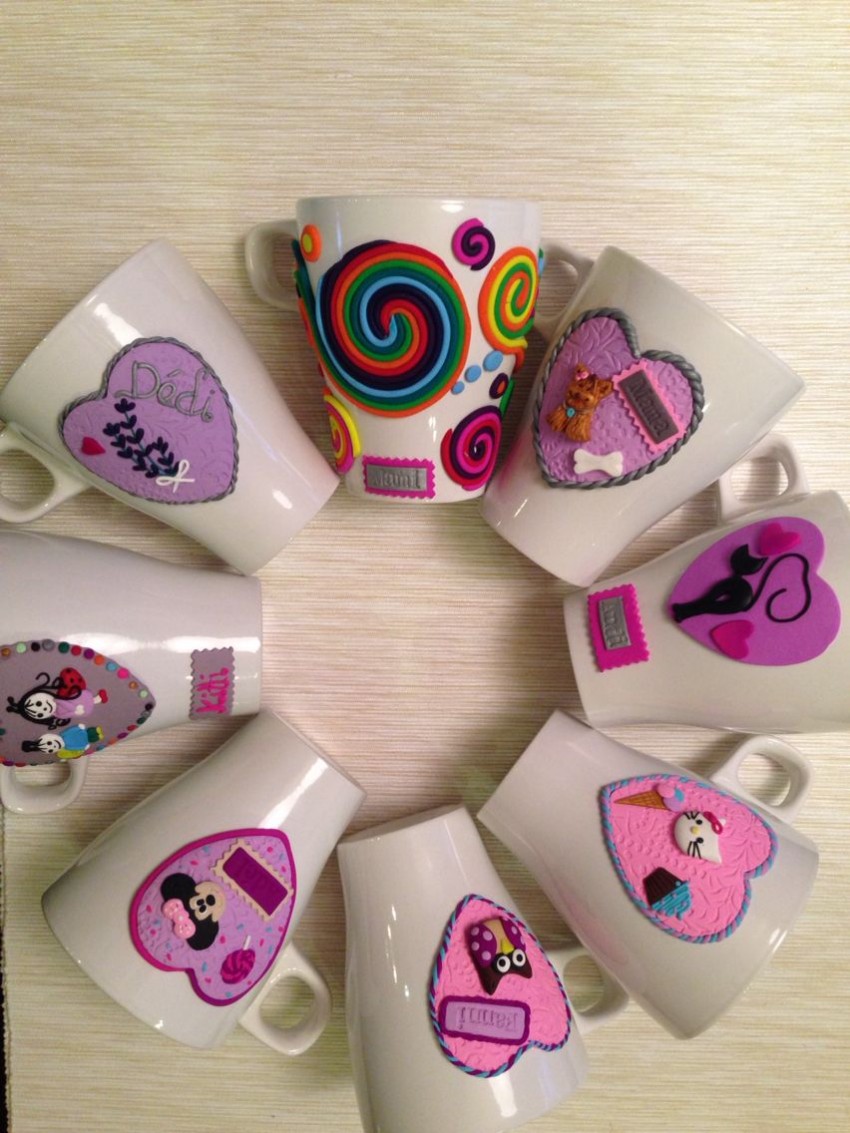 Опытные мастера с удовольствием делятся не только идеями для создания красивых и оригинальных кружек своими руками, но и полезными советами. На первых стадиях лучше закупать самые практичные цвета материала, которые получится смешивать между собой, сюда входят: синий, желтый, красный и белый.