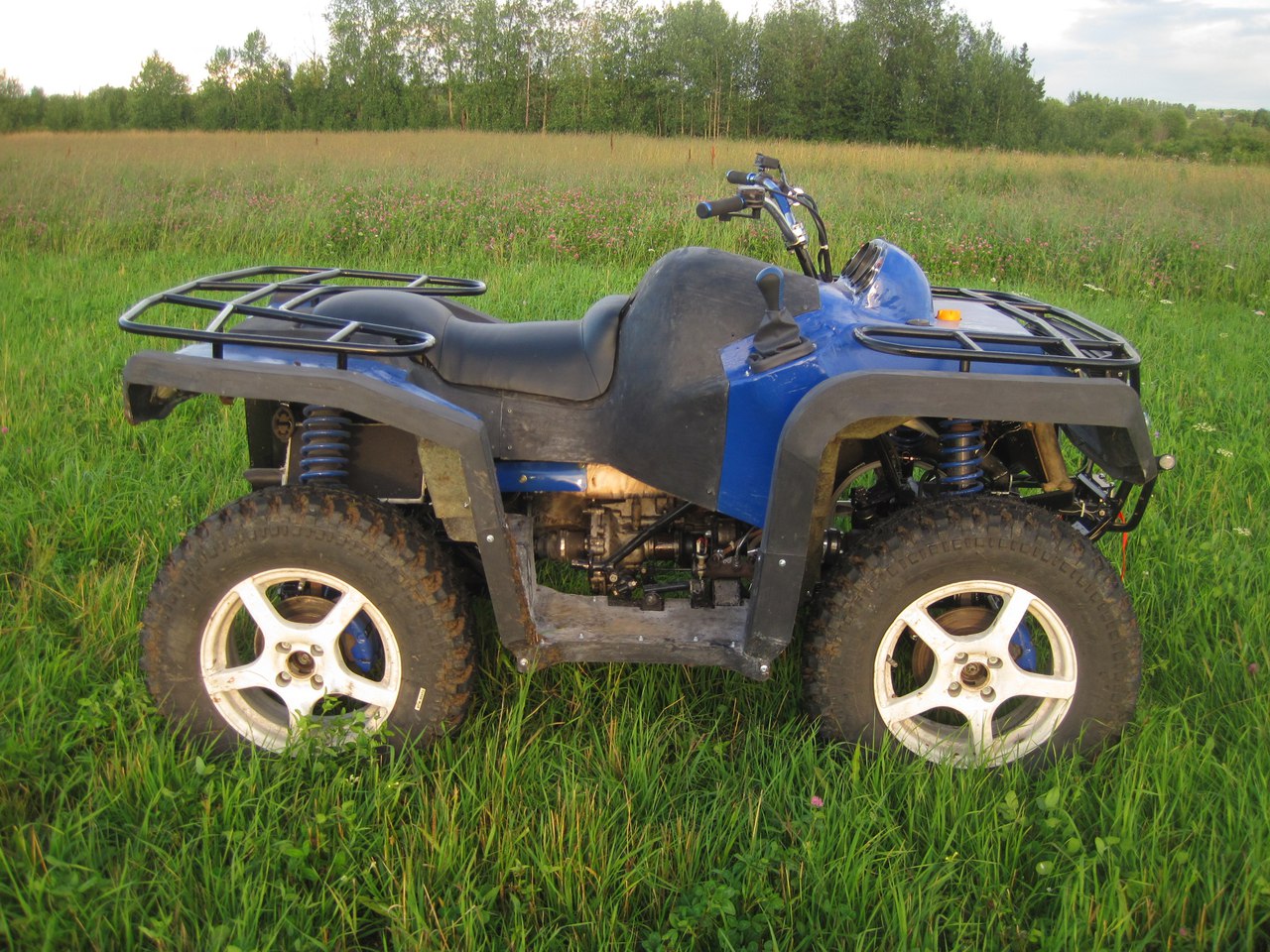 Квадроциклы полноприводного типа могут иметь очень приличную проходимость, но только когда они оснащаются надежным, мощным мотором и шипованной резиной. Полный привод требует обязательно использовать рулевые механизмы от автомобиля. Дополнительно понадобятся механическая трансмиссия и дифференциалы. Типовая рама не годится, обязательно варят новую, учитывая объем мотора.