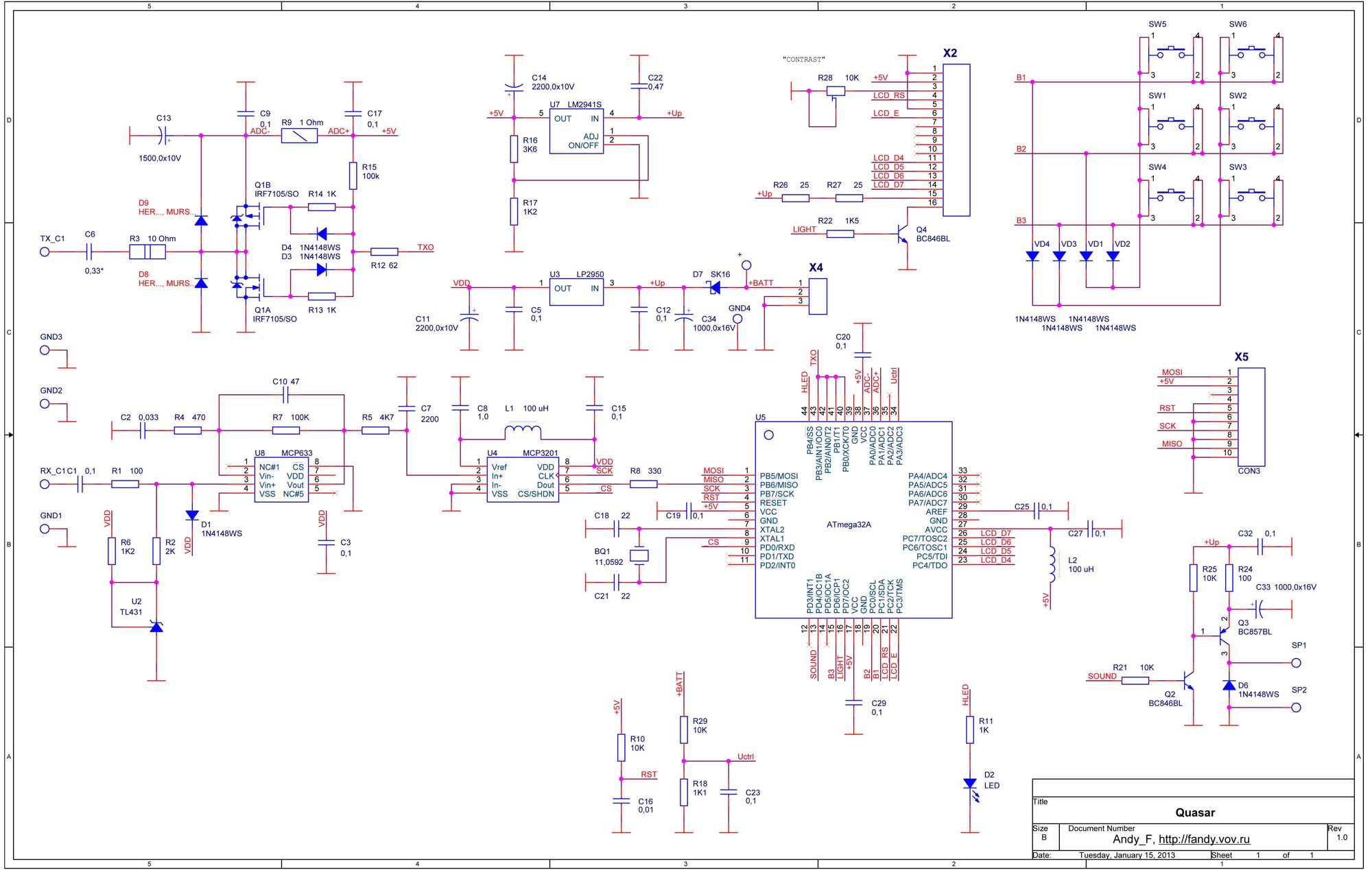 Схема металлоискателя Квазар, имеет средний уровень сложности (Единственный дефицитный компонент, это MCP3201, поэтому уже существует схема металлоискателя