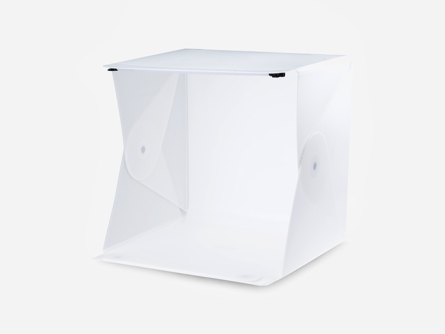 Лайткуб имеет при себе сумку для переноски, тем самым, обеспечивая лёгкость перемещения устройства. Благодаря подобному исполнению, в сложенном виде он в несколько раз меньше по ширине и объему. Поскольку в фотобокс можно установить пластиковый фон, в комплекте присутствуют несколько планов разного цвета. Куб обладает качественной LED подсветкой, гарантируя наивысший профессиональный результат съемки. Источник света, вместе с отражающей внутренней поверхностью, ограничивает к минимуму количество не освещенных участков предмета.