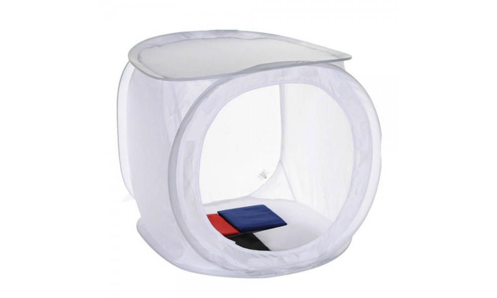 Лайткуб имеет при себе сумку для переноски, тем самым, обеспечивая лёгкость перемещения устройства. Благодаря подобному исполнению, в сложенном виде он в несколько раз меньше по ширине и объему. Поскольку в фотобокс можно установить пластиковый фон, в комплекте присутствуют несколько планов разного цвета. Куб обладает качественной LED подсветкой, гарантируя наивысший профессиональный результат съемки. Источник света, вместе с отражающей внутренней поверхностью, ограничивает к минимуму количество не освещенных участков предмета.