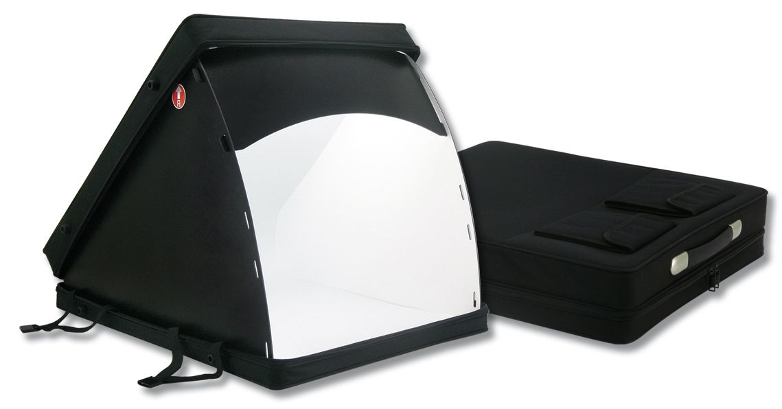 Он заменит белый предметный стол и рассеивающую насадку (лайтбокс) одновременно. Достоинства фотобокса: очень лёгкий, компактный — складывается втрое и убирается в чехол, а также недорогой — стоит около 2 тысяч рублей. Траты на его покупку невелики, а преимущества — огромны.