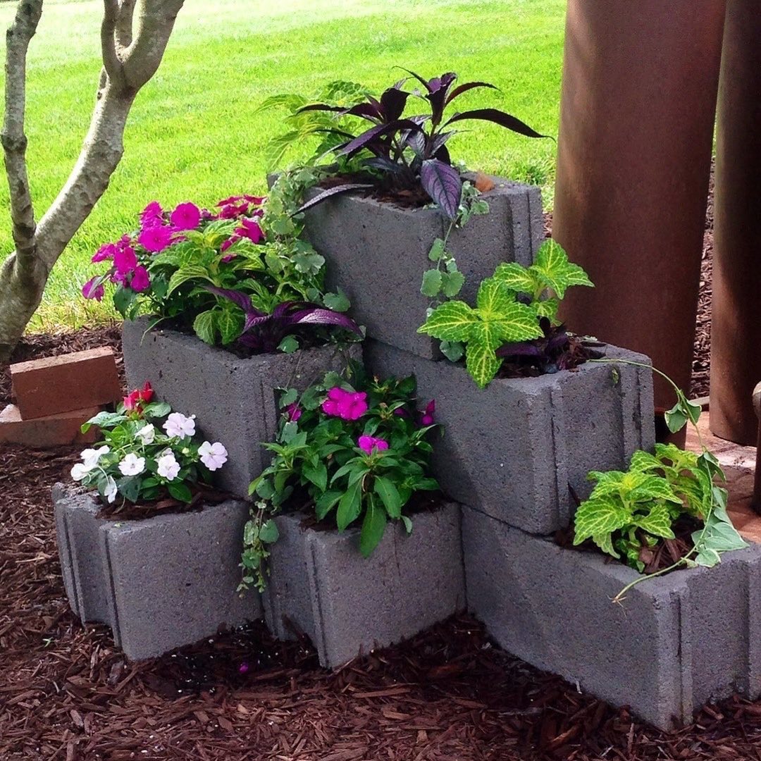 Используйте шлакоблоки в саду. Они будут актуальны для заднего и переднего дворика. Любите разводить цветы? Прекрасно! Из блоков получится отличный многоэтажный цветник.