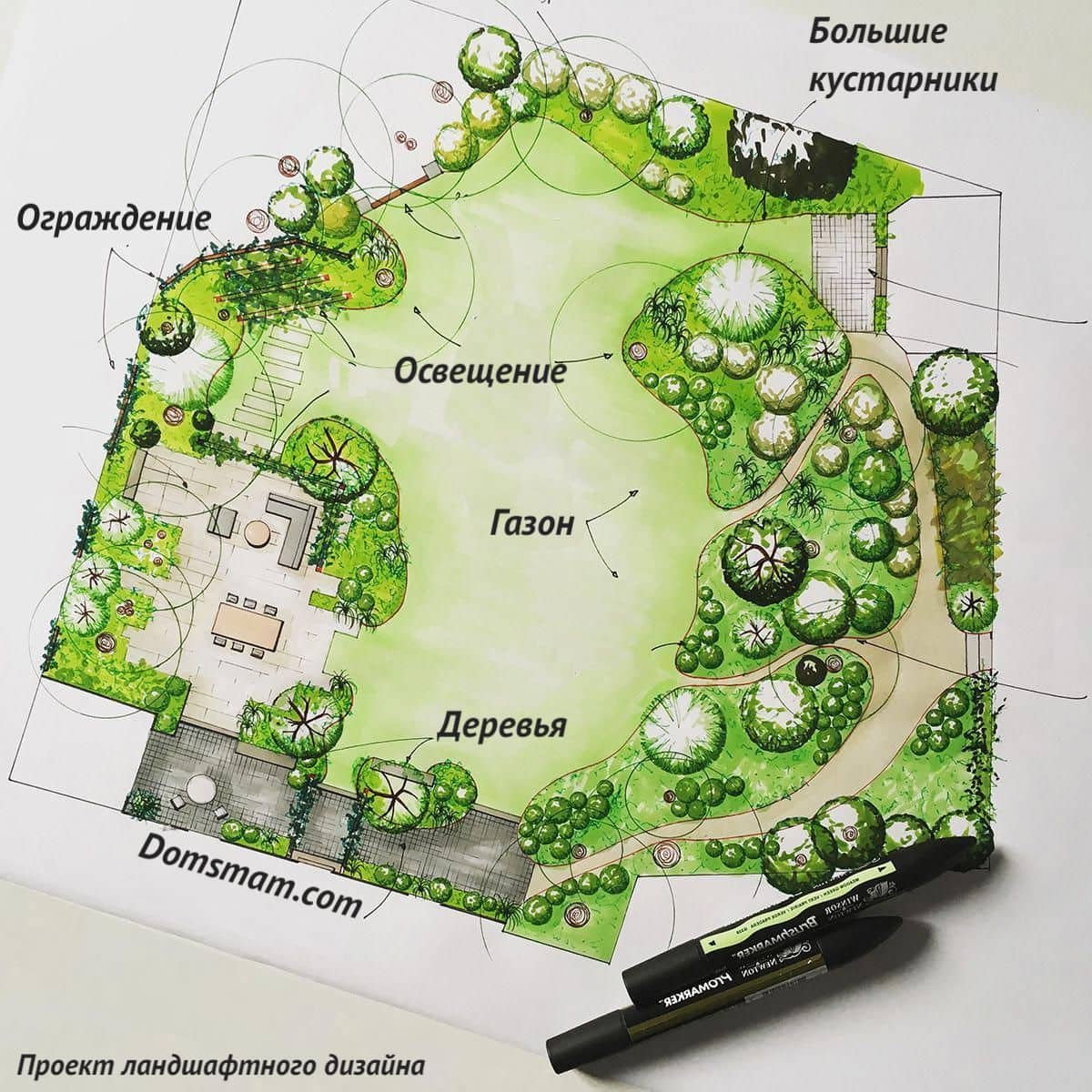 Благодаря такому подходу легче распределять объекты ландшафтного дизайна.