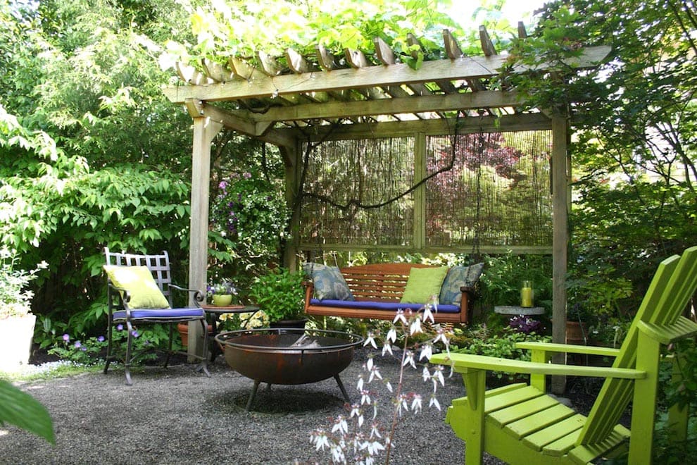 Их можно поставить около декоративного водоема, поместив рядом удобные шезлонги, кресла-качалки, детские качели. При необходимости такие ширмы позволят укрыться от любопытных глаз.