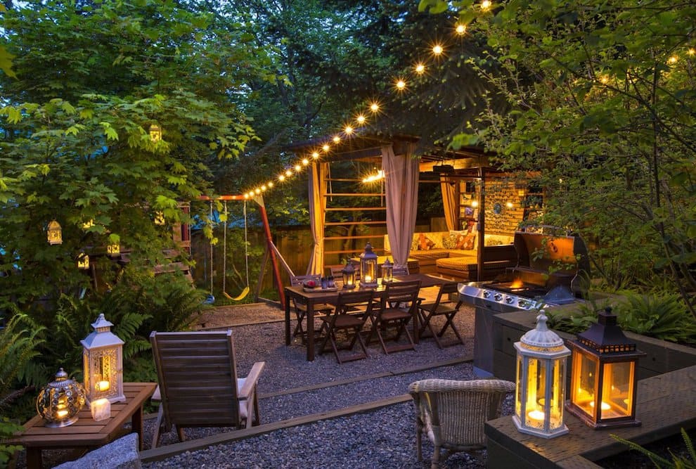 Дополнительное освещение поможет сделать атмосферу во дворе более расслабленной